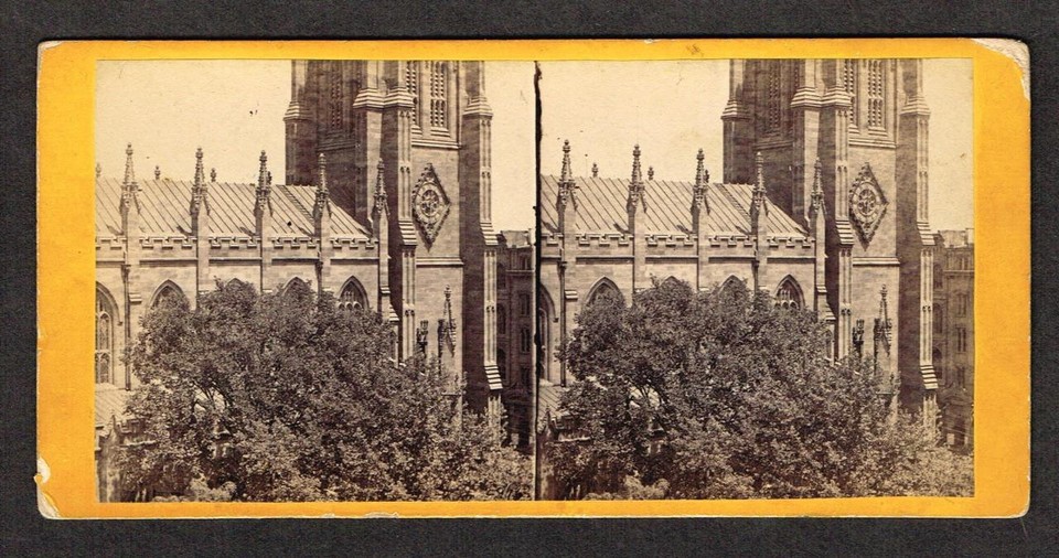 b495, E & HT Anthony Stereoview, #2976, Trinity Church, mit Steuermarke, 1860er