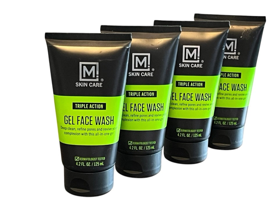 M Skin Care Herren Triple Action Gel Gesichtswasser 4er Set Tiefenreinigung Verfeinern der Poren