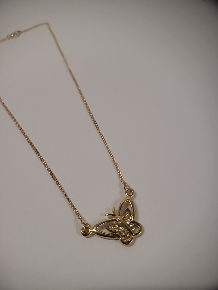 Vintage Gold Tone Chain Womens Necklace Butterfly Pendant Jewelry Costume