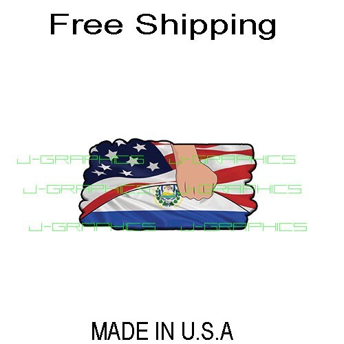American El Salvador Flag Salvadoran Sticker Decal Hand Pulling USA America