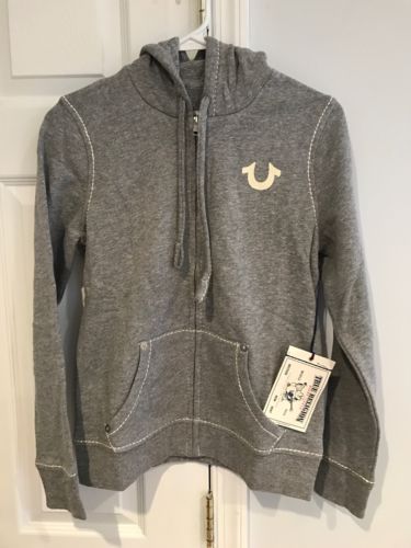 Neu mit Etikett True Religion Big T Damen-Hoodieja cke mit Reißverschluss meliert grau Größe Small