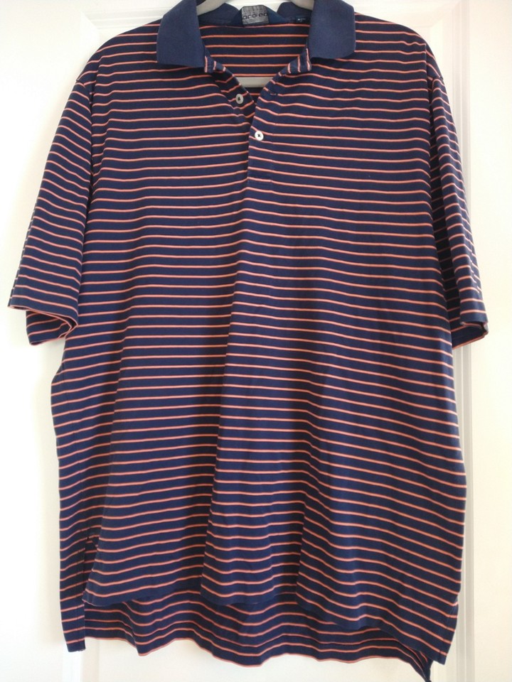Ralph Lauren Mens Polo Shirt L Blue Orange Striped Golf Short Sleeve Pima Cotton