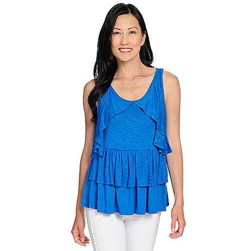 Kensie Damen XL Saphir ärmellos doppelte Rüschen ärmelloses Top Neu mit Etikett