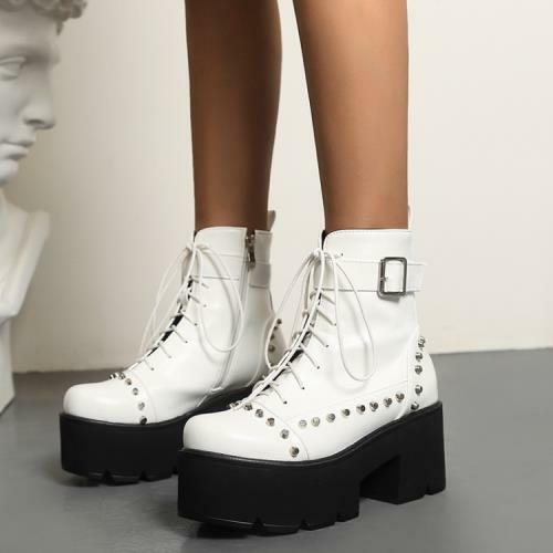 Damen Stiefeletten Chelsea Boots Damen Goth klobige Plateausohle Schnalle Motorschuhe L