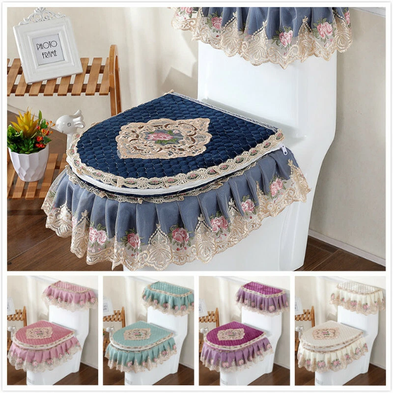 3tlg/Set Toilettensitzd eckel Tankdeckel Reißverschluss Spitze Deckel Pads Bad Accessoire