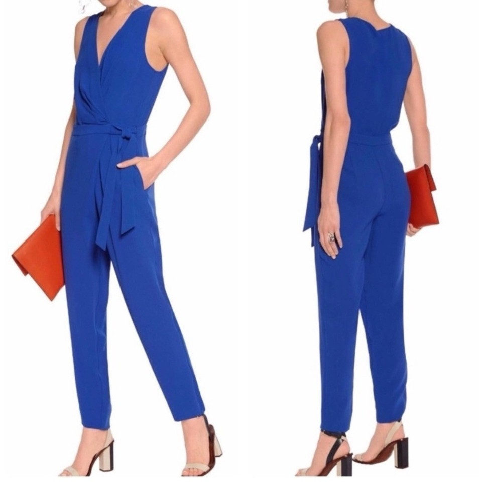 Diane Von Furstenberg Jumpsuit Sz 10 Wrap Blue Cordia Career Party Old Money