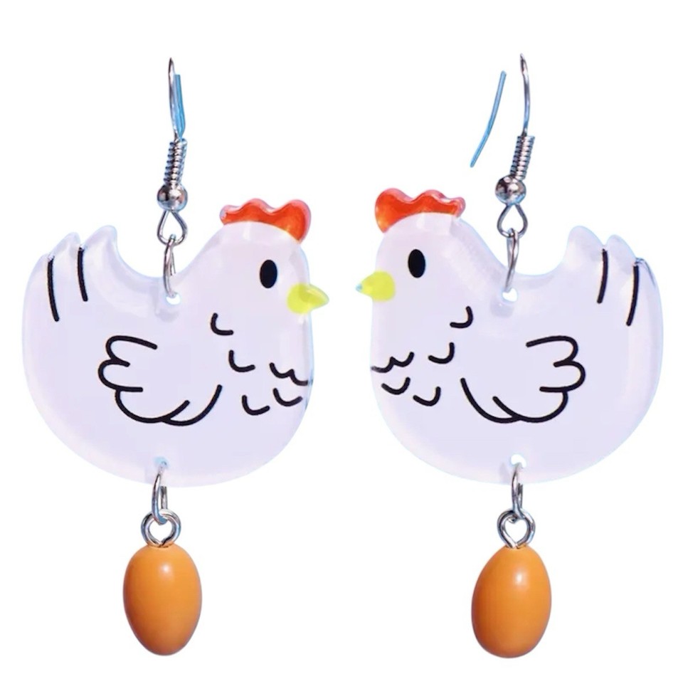 Klassische Boutique Henne und Ei Motiv Acryl Damen Ohrringe ☂️