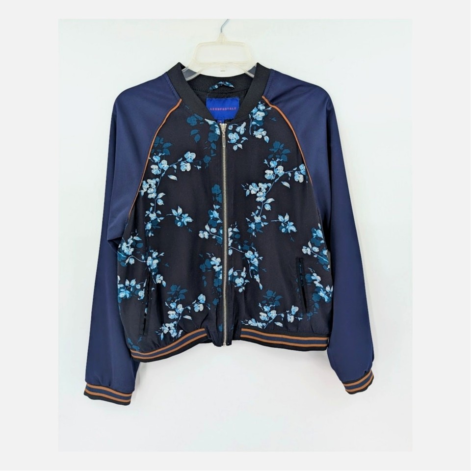 Aeropostale Varsity Bomberjacke Damen XL Blau Blumenmuster Retro Twee Schule