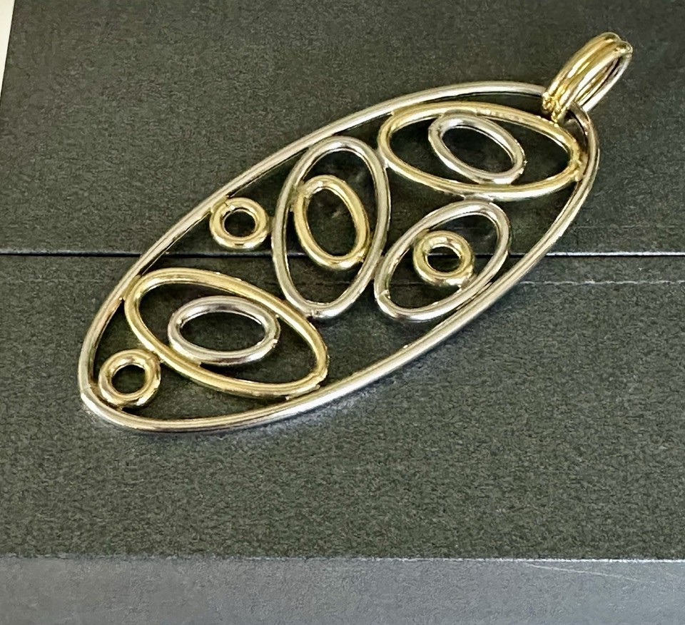 Schwerer Anhänger 9 kt Gelb- und Weißgold Kreisdesign