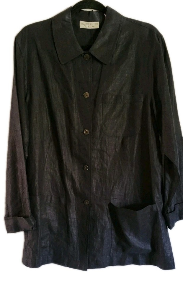 Valerie Stevens 100% reines Leinen Lagenlook Mantel Knopfleiste schwarz Damen Medium