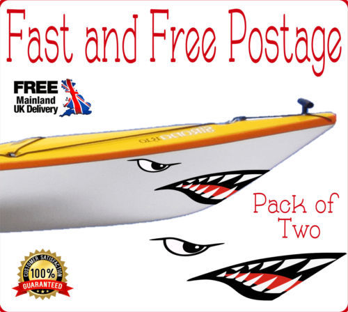 Kajak Haie Zähne Aufkleber 2er Pack Kanu Sticker Fluss Floß Wildwasser Bootfahren