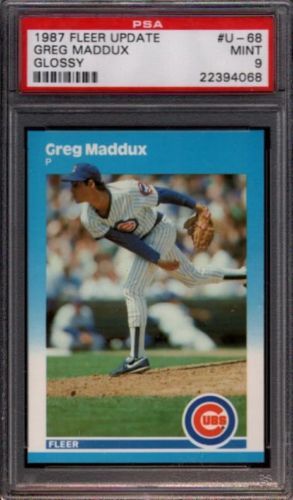 Lot of (2) Greg Maddux Braves HOF 1987 Fleer Update Glossy #68 Rookie rC PSA 9