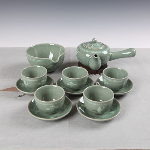 Koreanische Seladon Teekanne Keramiktopf Handarbeit Pottery Teeservice Teetasse irdene Kanne
