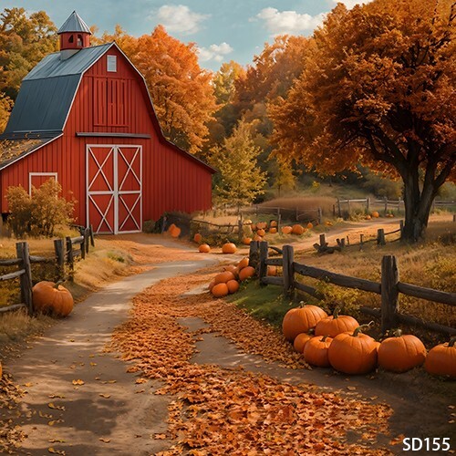 10'x10' Computerbemalt es Bauernhaus Kürbisspur Szene Hintergrund Kulisse BHF155
