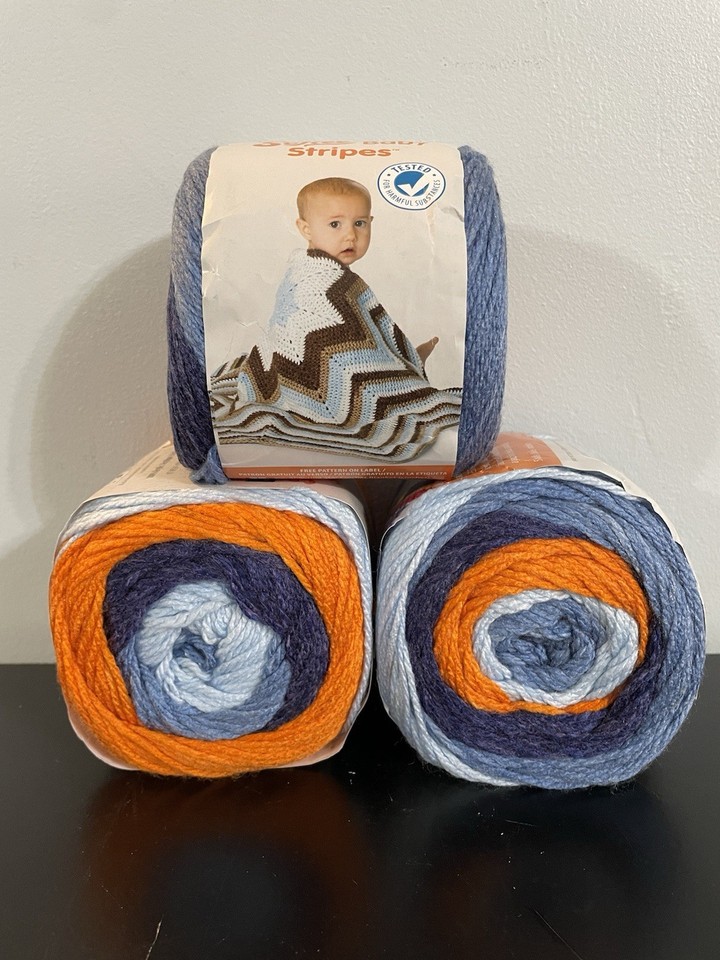 Lot Of 3 Bernat Softee Baby Stripes Yarn. Blue Jeans Stripe. 120g Ea. Preowned