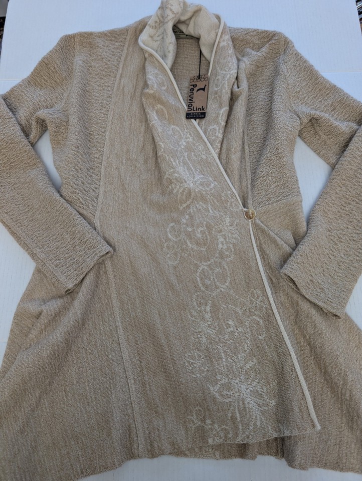 Peruvian Link Alpaca Collection Pullover Jacke - Gr. M - hellbraun Blumen Strick Wickeloptik -