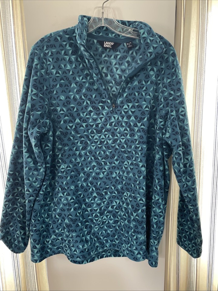 Lands End Pullover Damen Größe XLT 18 mittelblau 1/4-Reißverschluss geometrisches Fleece