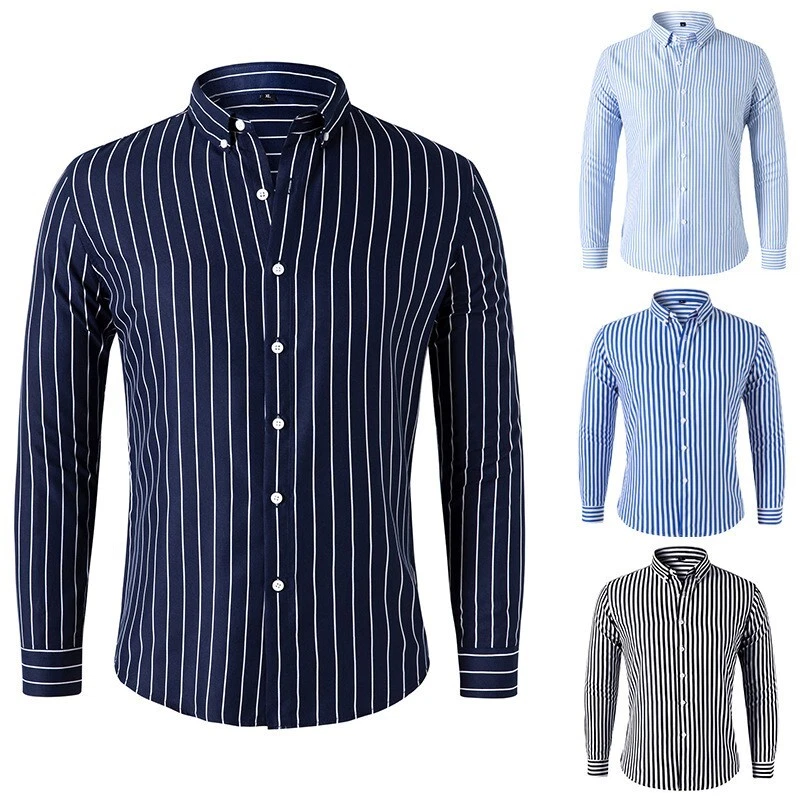 Herren Hemden Langarm Formell Business Gestreift Freizeit Slim Hemden Tops