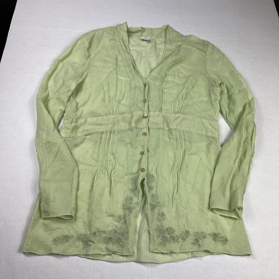 J.Jill Embroidered Button Down Shirt Green Sheer Boho Y2K Long Sleeve Top SMALL