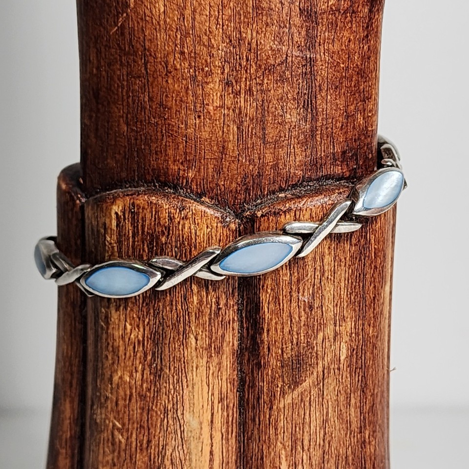 Vintage Sterling Silber 925 milchig blau grau Stein Armband Unikat Nachlass Fund