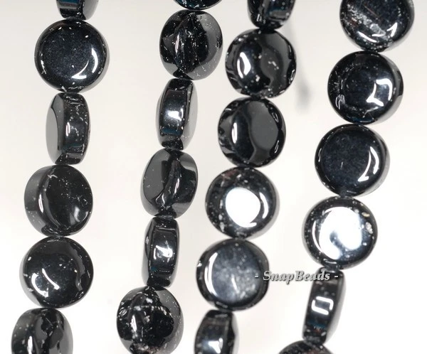 9 MM SCHWARZER TURMALIN EDELSTEIN FLACH RUND LOSE PERLEN 7,5 Zoll