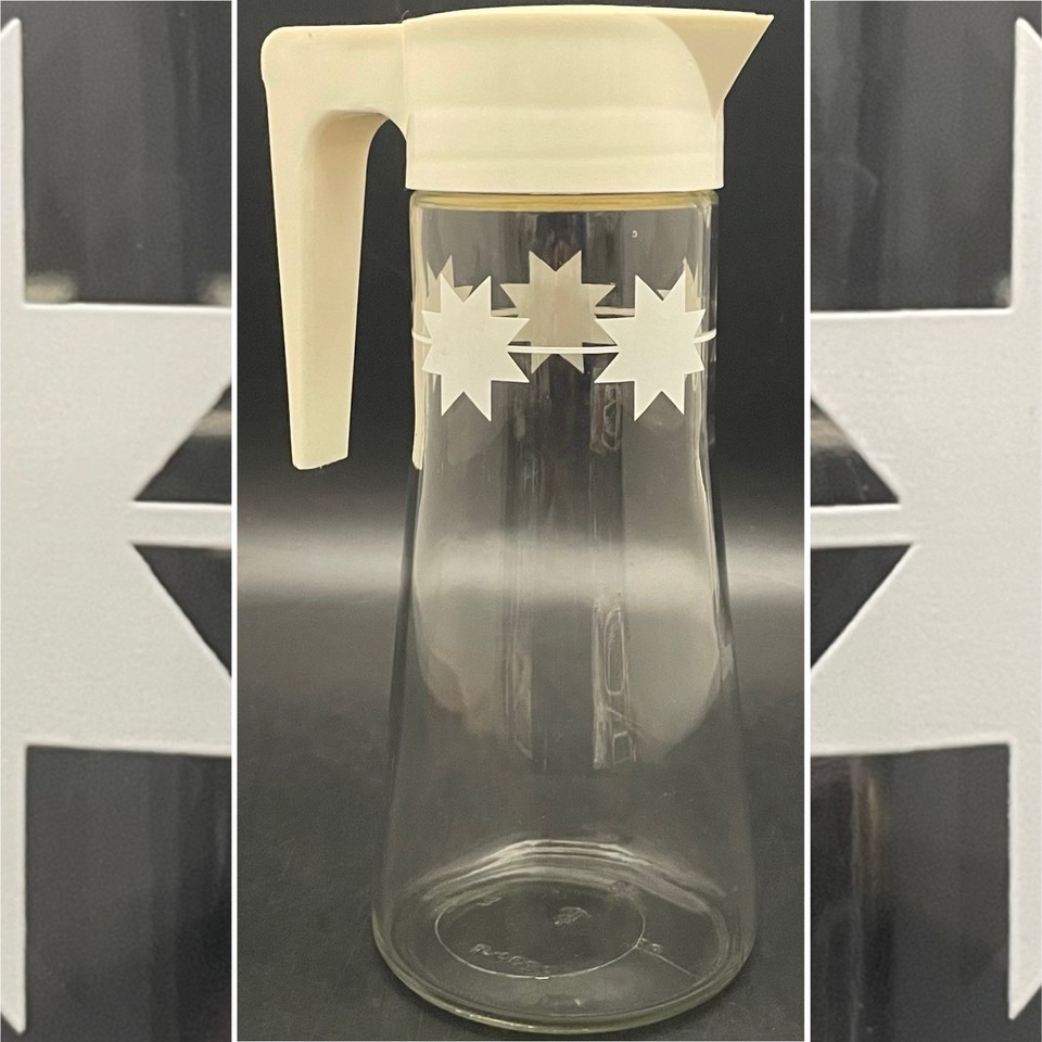 Anchor Hocking L4027 Kaheksakand 5 Oktagramm Sterne Sirup Spender um 1960 8,75"t