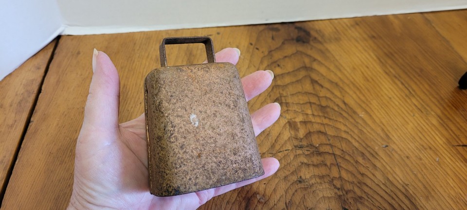 Alte Kuhglocke 4" hoch x 3" schöne rostige Grundierung Bauernhaus Dekor