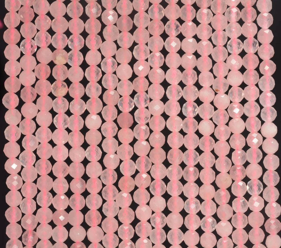 3 MM ROSA ROSENQUARZ EDELSTEIN KLASSE AAA MIKRO FACETTIERT RUND LOSE PERLEN 15 ZOLL