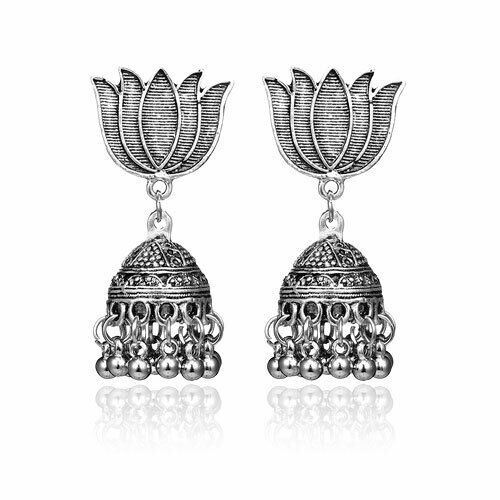 Indische Pakistanische Bollywood Silber Braut Jhumka Ohrringe Bali Lotus Jhumki Boho