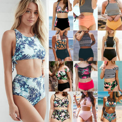 Damen hochtaillierte s Bikini-Set Push Up gepolsterter Badeanzug Beachwear Bademode Baden