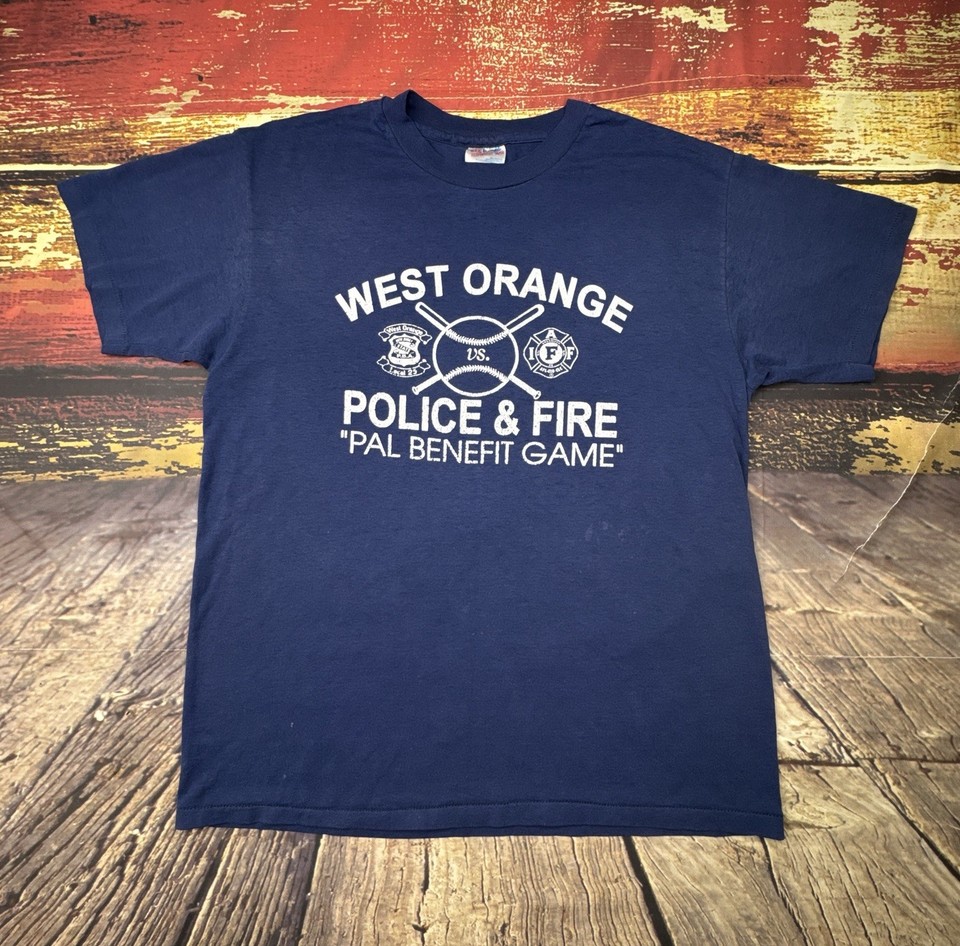 Vintage West Orange NJ Police Fire Dept Baseball T-Shirt Herren L/M Einzelnaht USA