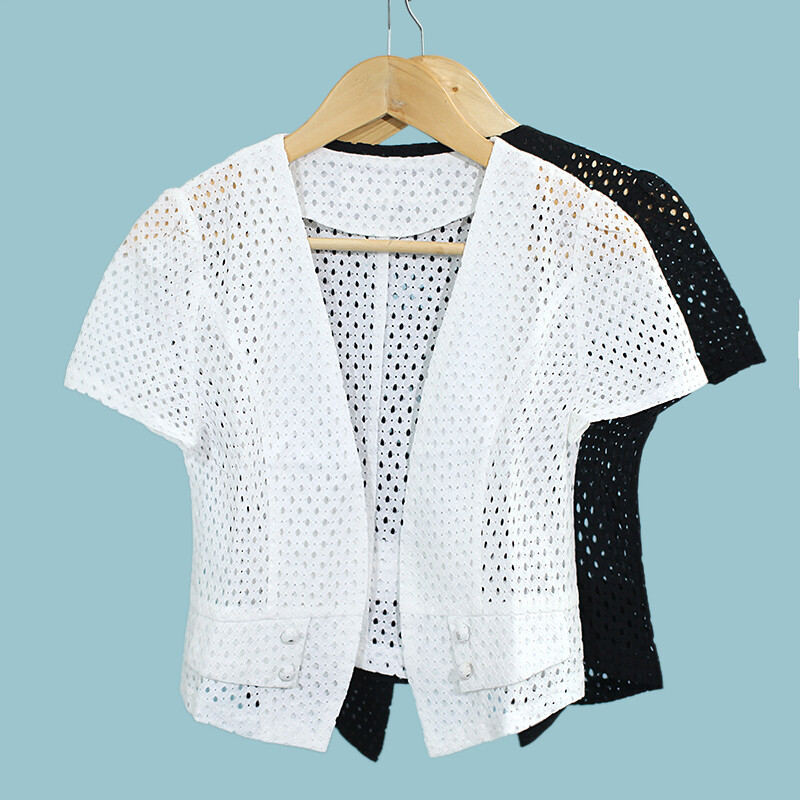 Damen Shrug vorne offen Bolero Cardigan durchbrochen Kurzarm ausgehöhlt schwarz