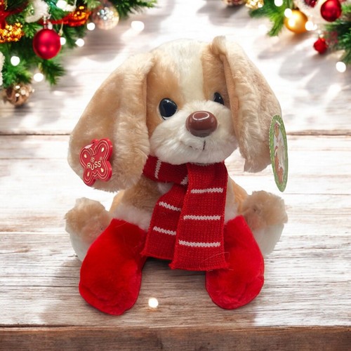 Weihnachten Russ Berrie Plüsch Welpe Hund Bootsie roter Schal Korea Original Etikett