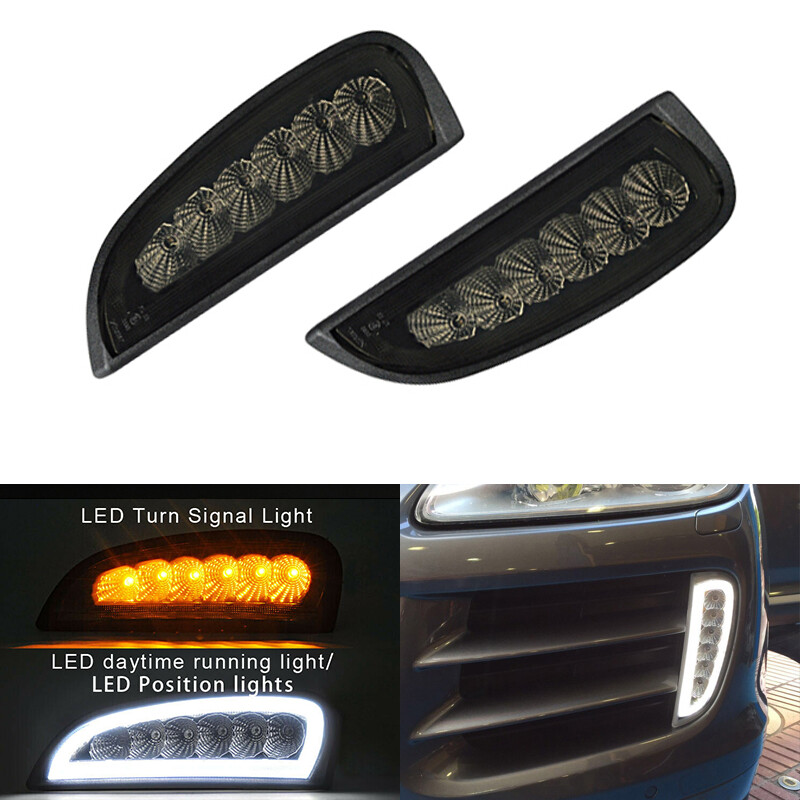 Smoked LED Front Bumper DRL Fog Light For 07-10 Porsche Cayenne Turn Signal Lamp