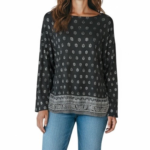 J.Jill Perfect Pima Damen Langarmshirt schwarz grau Blumen M Medaillon