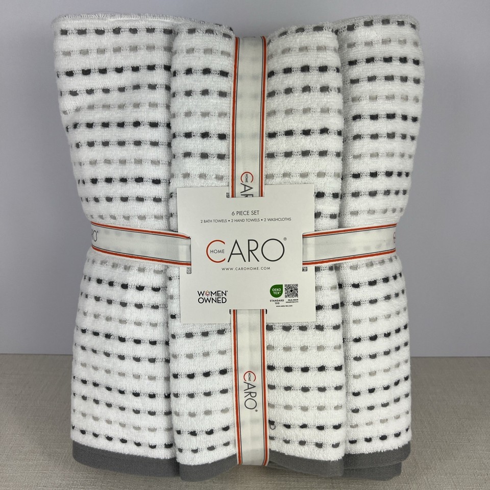 Caro Home Badetuch Set grau weiß 2 Bäder 2 Hände 2 Waschen 100% Baumwolle weich 6-teilig