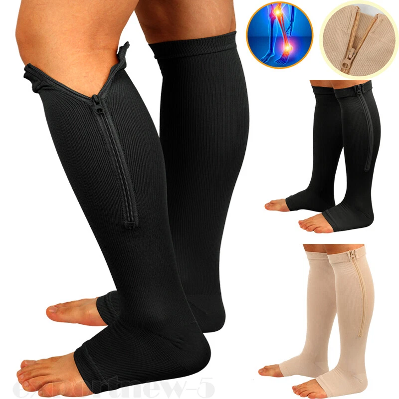 Socks Zipper Compression Stockings Flight Socks Zip Closure Open Toe Knee High