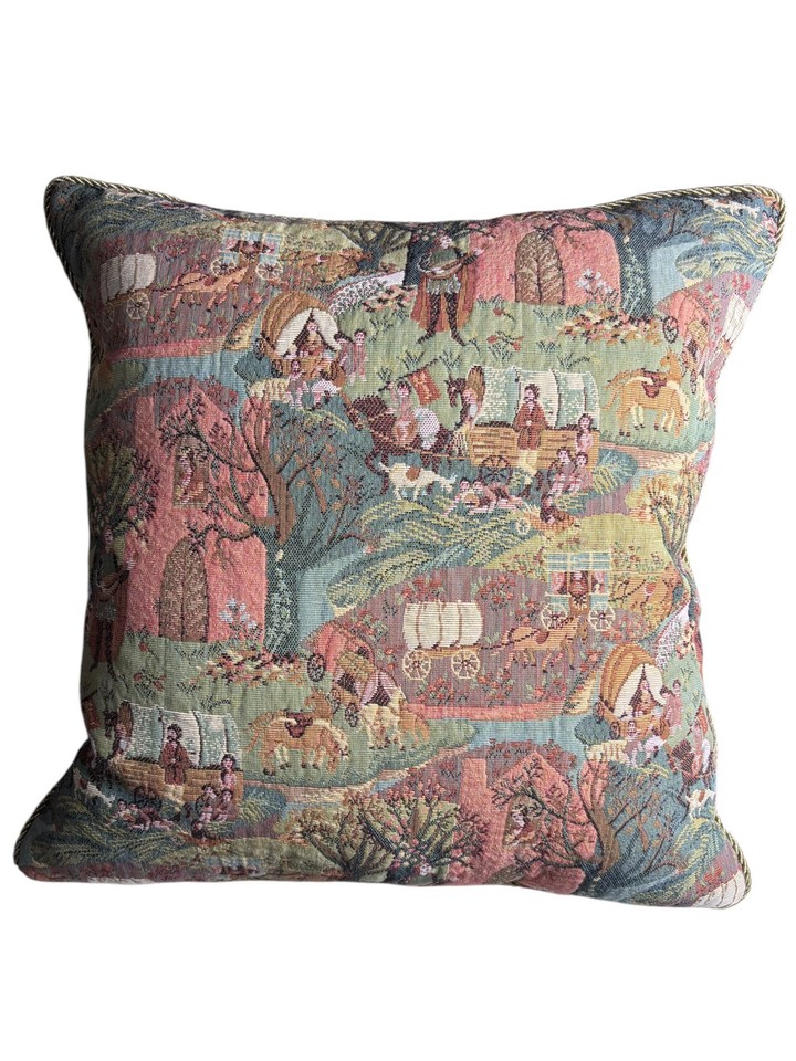 Vintage Dekokissen Französische Landschaft Wandteppich Pastelltöne 17 Zoll Mittelalter Viktorianisch