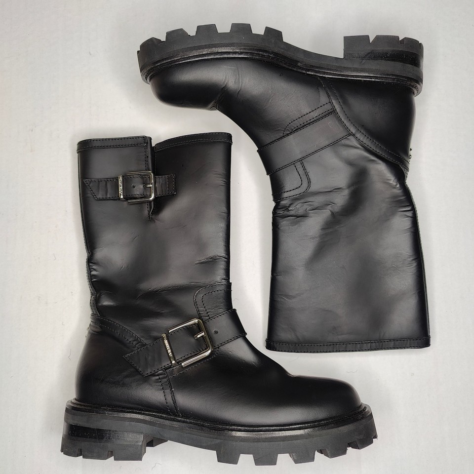 Jimmy Choo Damen Biker II Glattleder schwarz Harness Stiefel Größe EU 36,5 US 6,5