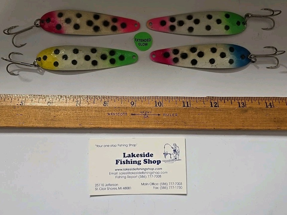 SET BESTEHEND AUS 4 VINTAGE 3,75" MARKENLOSEN SUPER LEUCHTENDEN LACHSLÖFFELN ANGELN TROLLING KÖDER