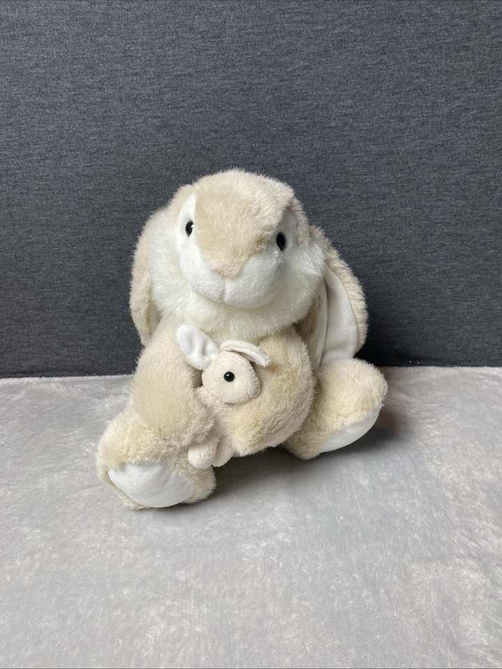 - Easter Plush, Soft Toy, Stuffed Animal, Easter Bunny, Mama and Baby, Approx 10 in, Beige and White Plush