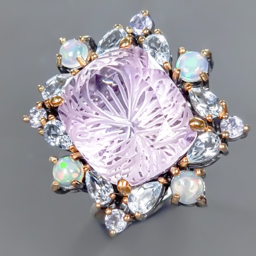 Handmade 26 ct Natural Amethyst Ring 925 Sterling Silver Size 7.75 /R428182