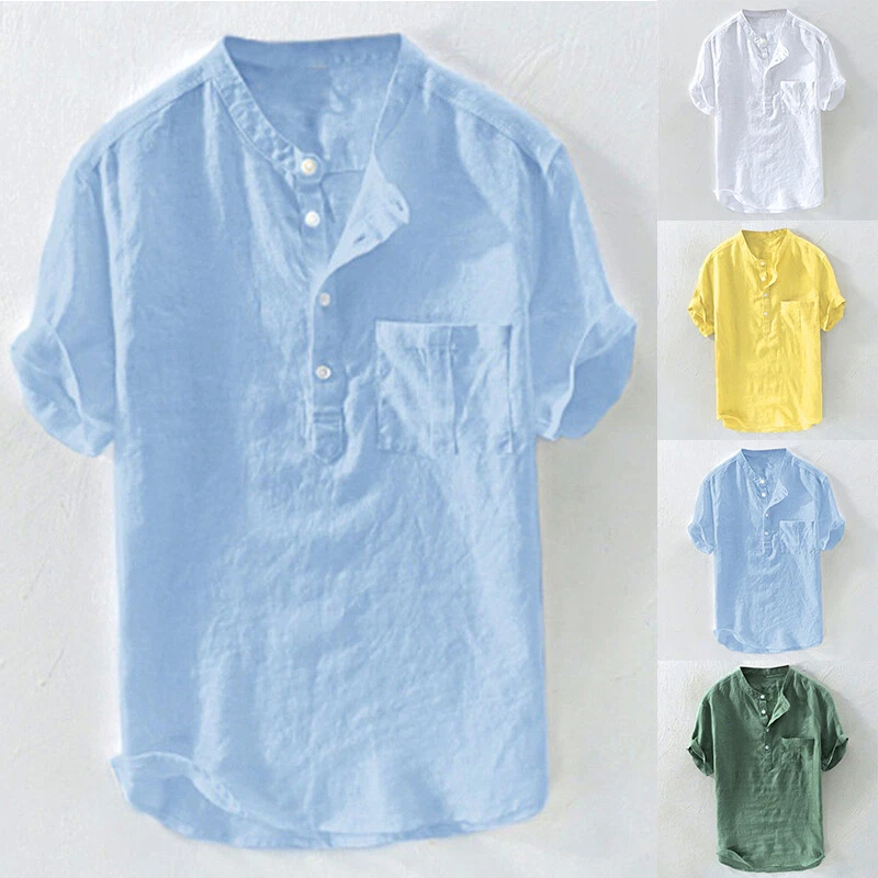 Sommer Herren Leinen Baumwolle Kurzarm Knopfleiste Hemden Brusttasche Bluse Tops