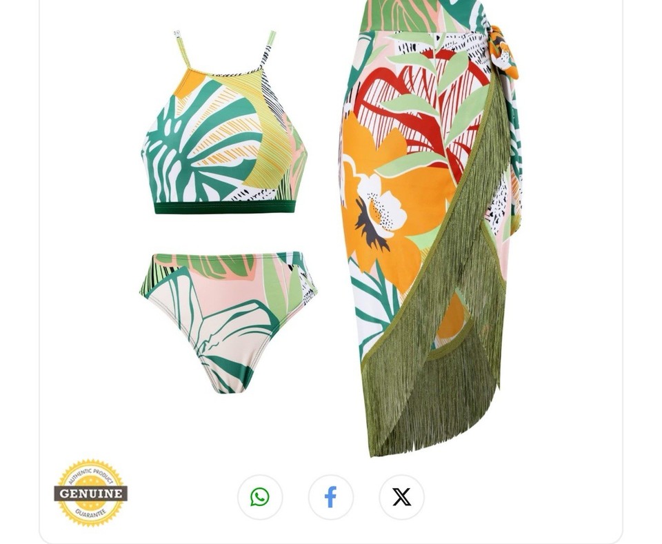 Damen 2 Stück Badeanzug mit Strand Cover Up Wickelrock Blumen Bikini Set BademodeXL