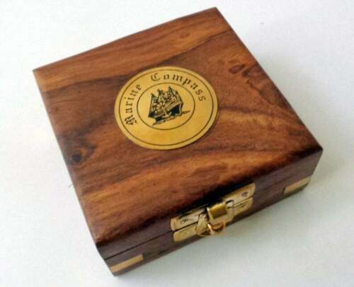 Halloween Handarbeit Antik Maritim Messing Kompass mit Holzkiste Maritim Deko