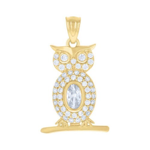 14kt Gelbgold Damen Zirkonia Eule Vogel Tierwelt Charm Anhänger