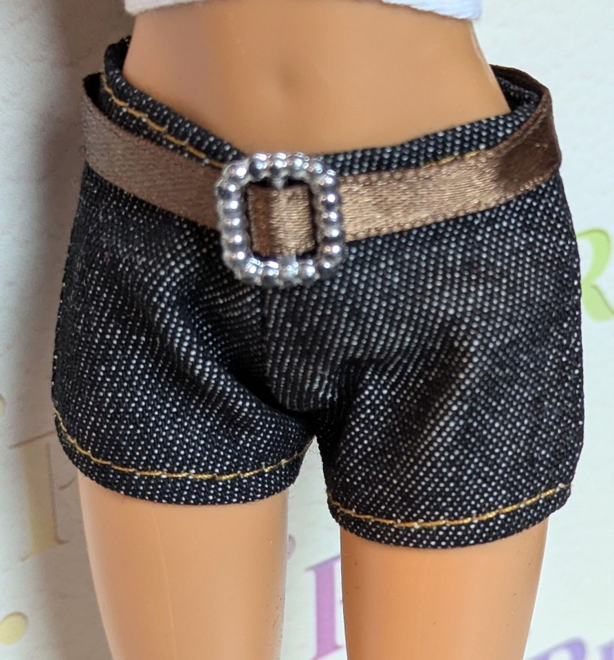 Dunkelblaue DENIM braun GÜRTEL silber SCHNALLE Jeans SHORTS für Barbie 11,5" Puppen