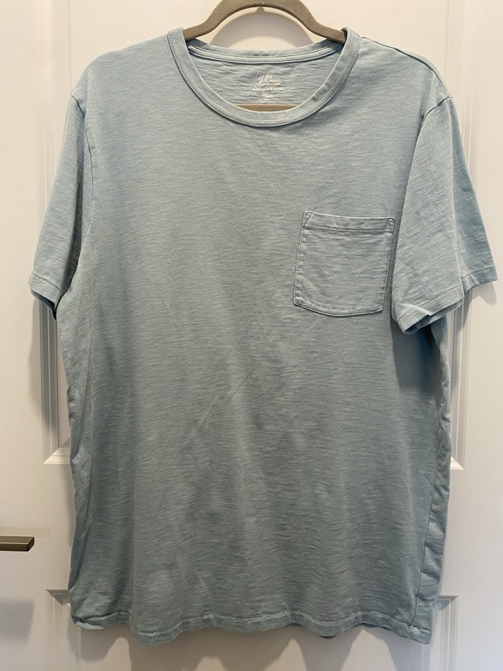 J CREW Herren Large Garment Dyed Knit Goods Pocket Tee Hellblau