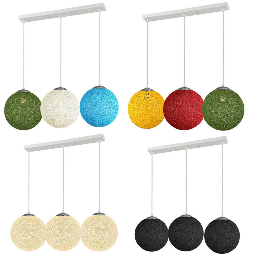 3 Kopf Pendelleuchten Rattan Retro Loft Stil Ranken Kugel Industrial Deckenlampe