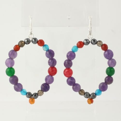 NEU Multi-Edelstei n Ohrringe - Sterlingsilber Mehrfarbig Damen Piercing Hänger